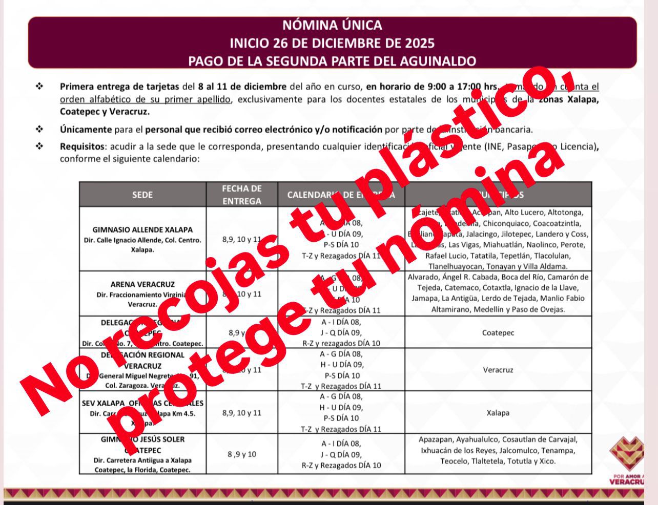 Por eso corre como pólvora en grupos de Whatsapp la advertencia de no recoger la nueva tarjeta de nómina, pese a la instrucción de hacerlo entre este lunes 8 y el jueves 11: “Tu nómina está más segura mientras no recojas la tarjeta.”