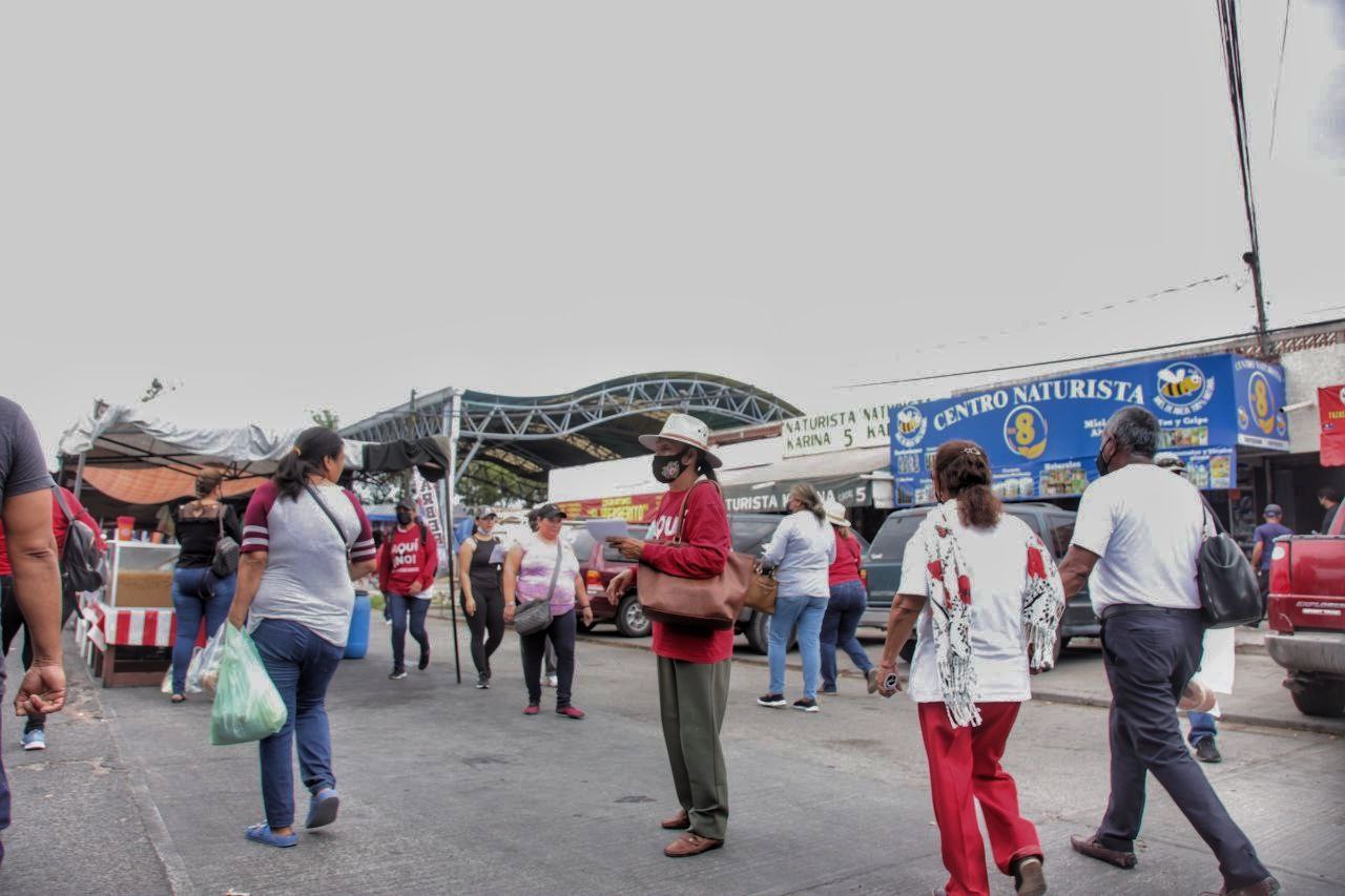 Ahi, trataron de organizarse para volantear en en el mercado sobre ruedas, pero algunos aprovecharon para realizar sus compras personales, perdiéndose entre la multitud, y los asistentes al tianguis no sabía exactamente de qué se trataba el volanteo, por lo que terminaban desechando los papeles en el piso y algunos depósitos de basura.